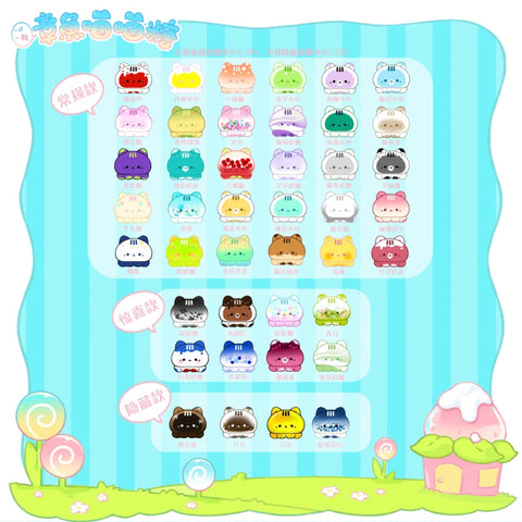 By Strawberry Mousetta. This series contains 30 regular designs (many of which have little shaker beads inside), 8 rares and 4 secrets. Each blind bag contains 4 minis. Each bag contains 8 blind bags (32 minis total).